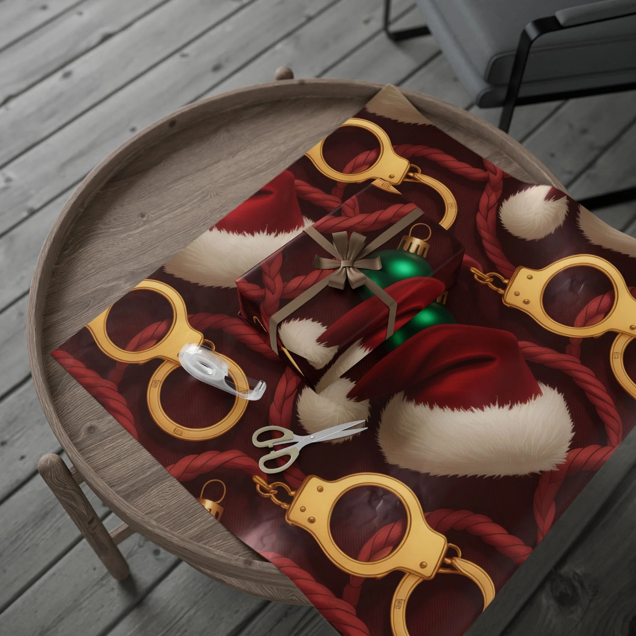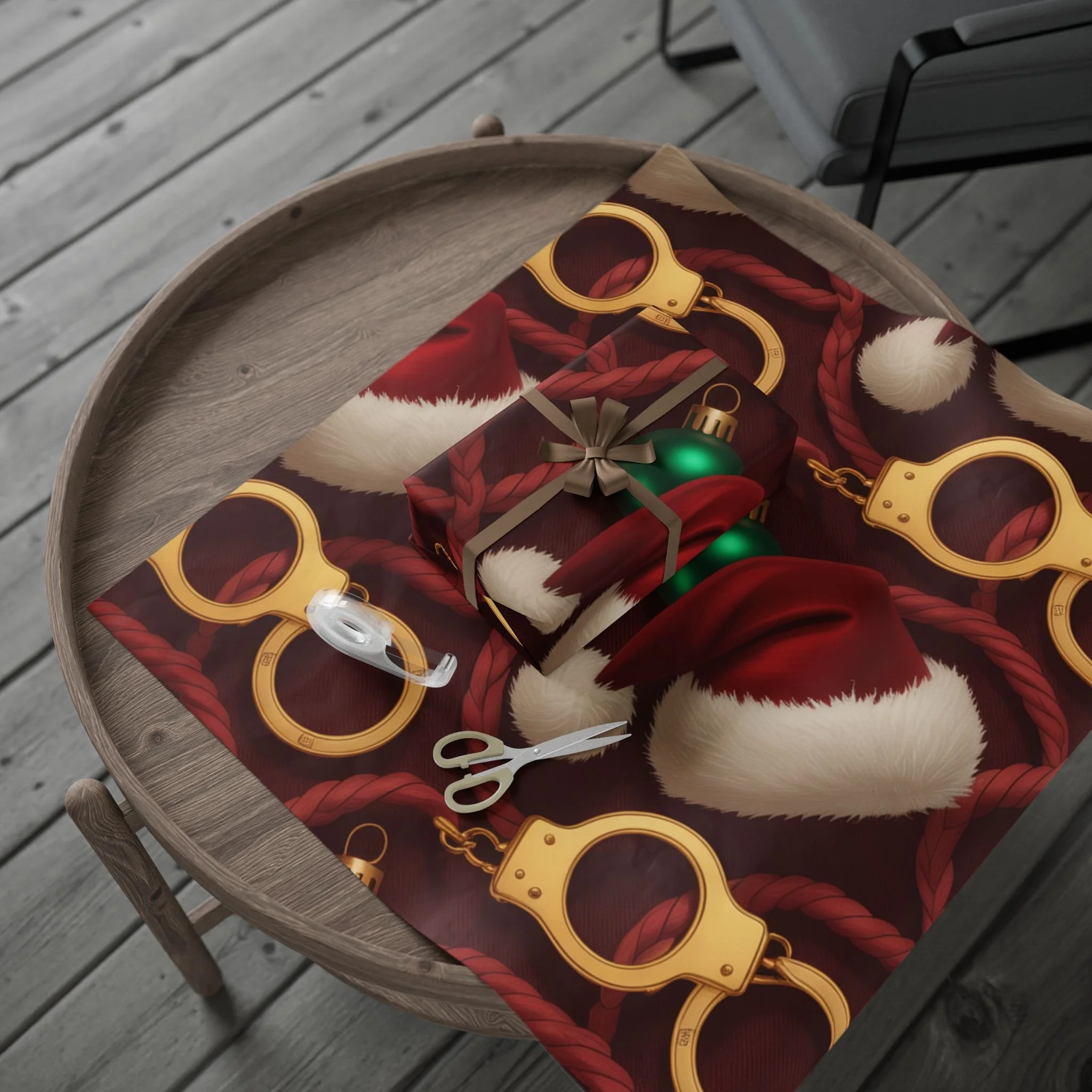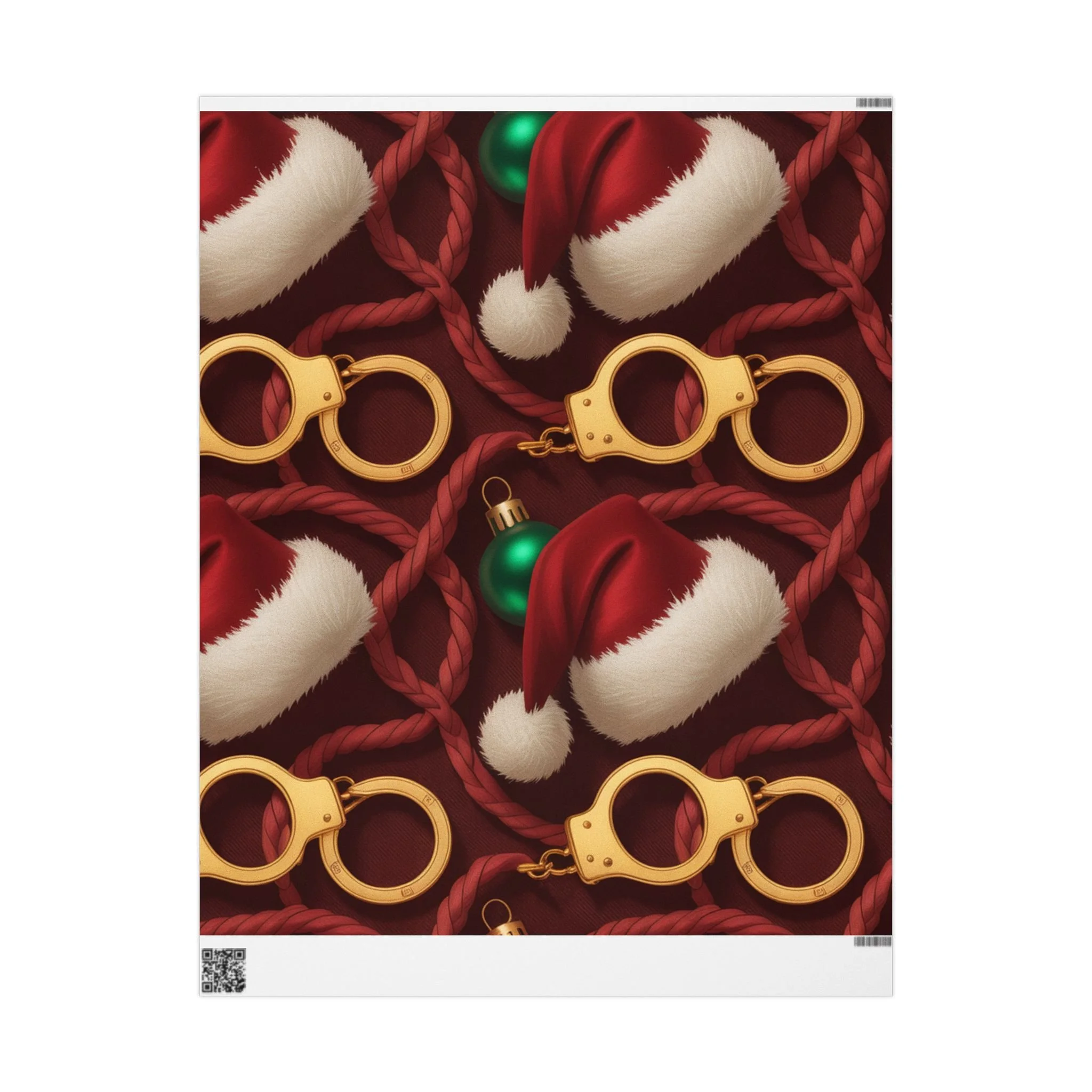 Christmas Handcuffs & Santa Hat Wrapping Paper – Naughty & Nice Holiday Gift Wrap
