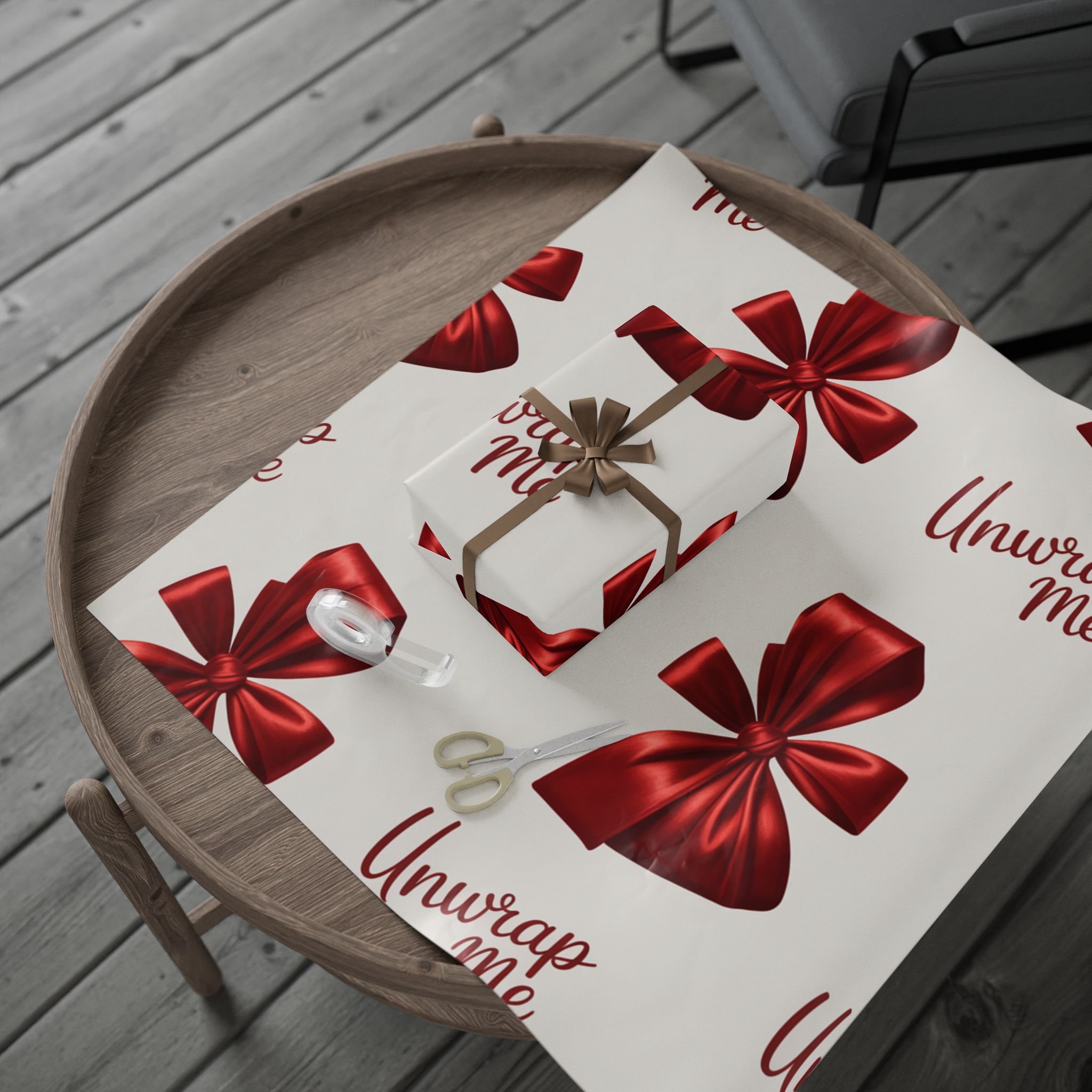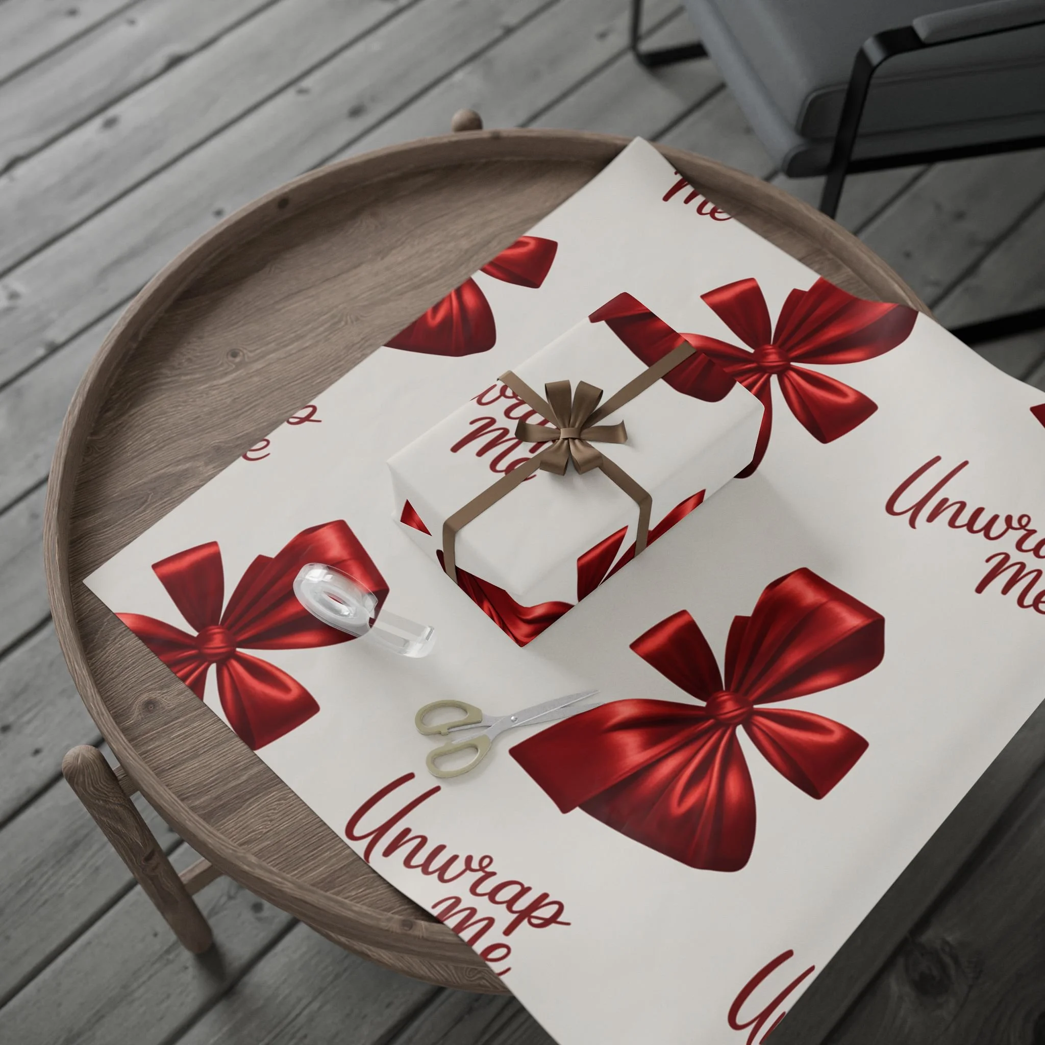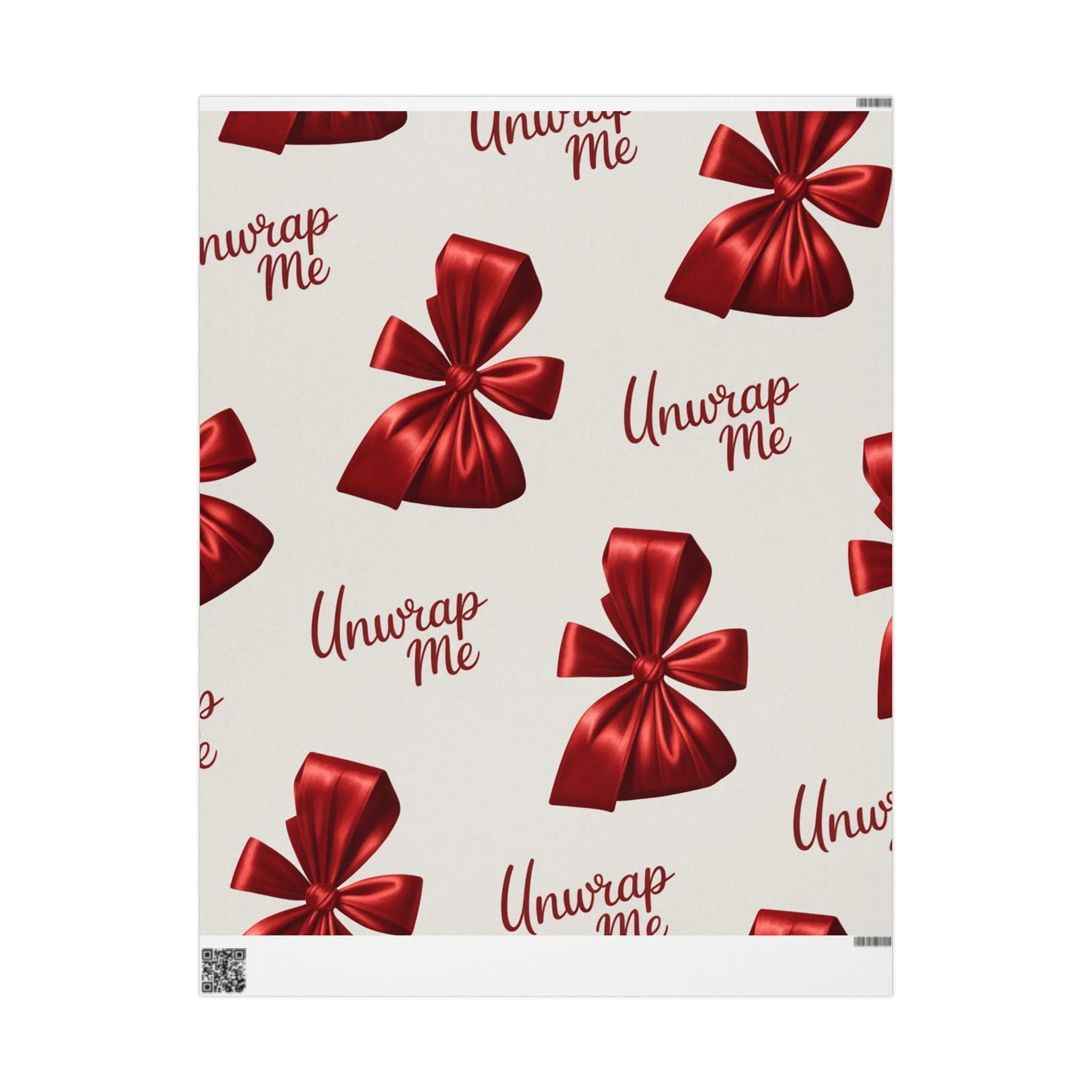 Wrapping Paper Roll — "Unwrap Me" Red Bow Holiday Gift Wrap